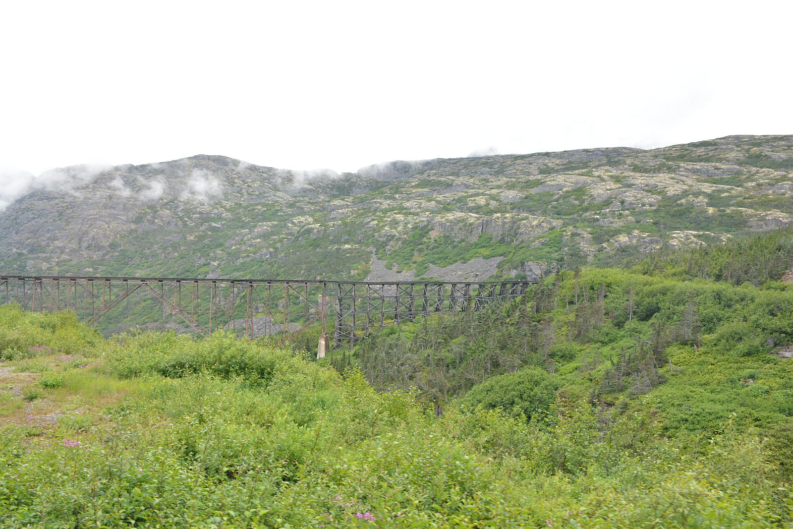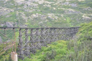 The $10 million project (a lot of money in those days!) was the product of British financing, American engineering and Canadian contracting. Tens of thousands of men and 450 tons of explosives overcame harsh and challenging climate and geography to create this wonder of steel and timber. We were very fortunate to experience the thrill of the ride on the WP&YR!!